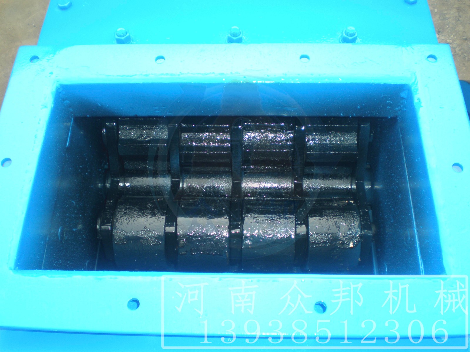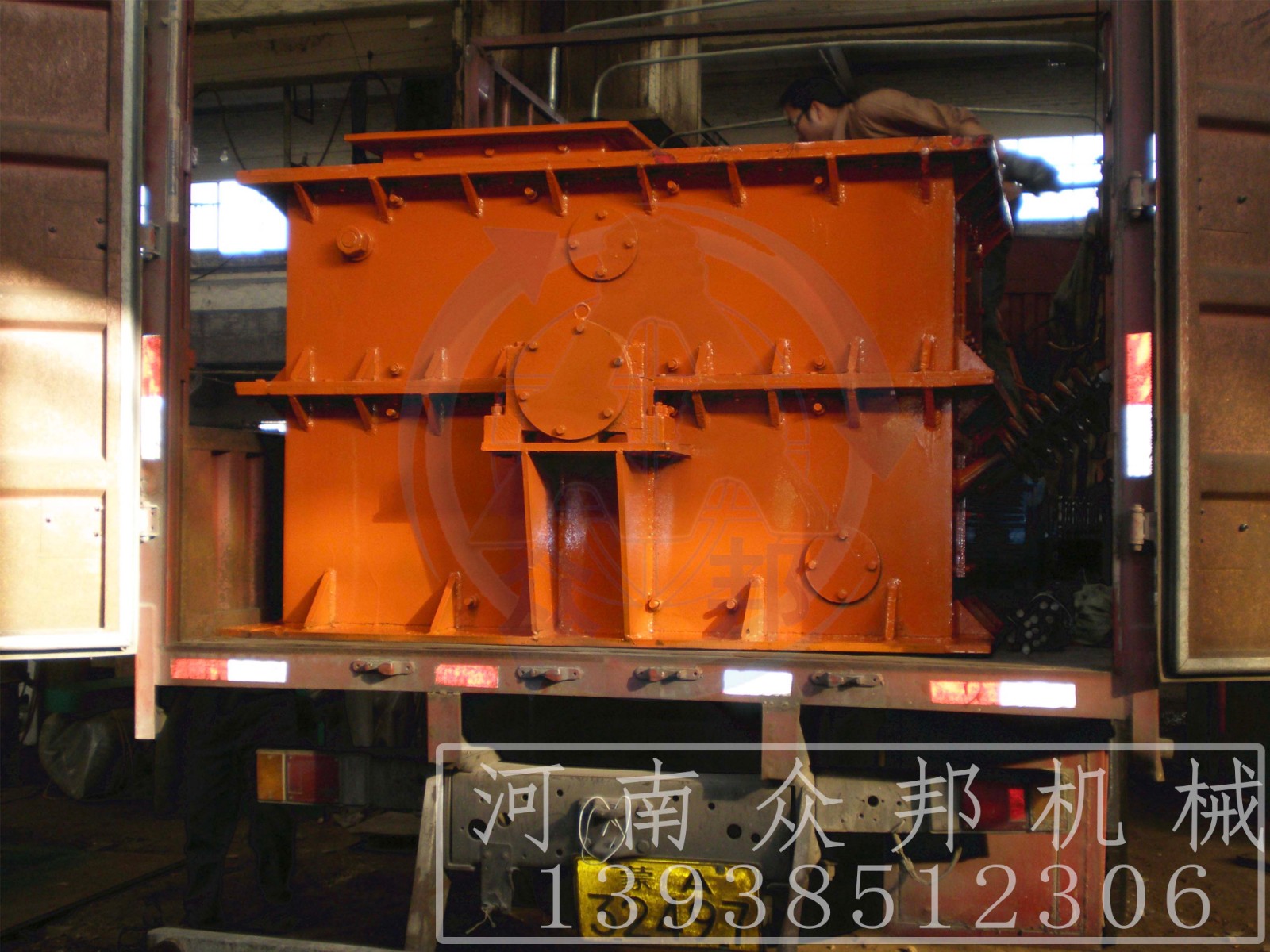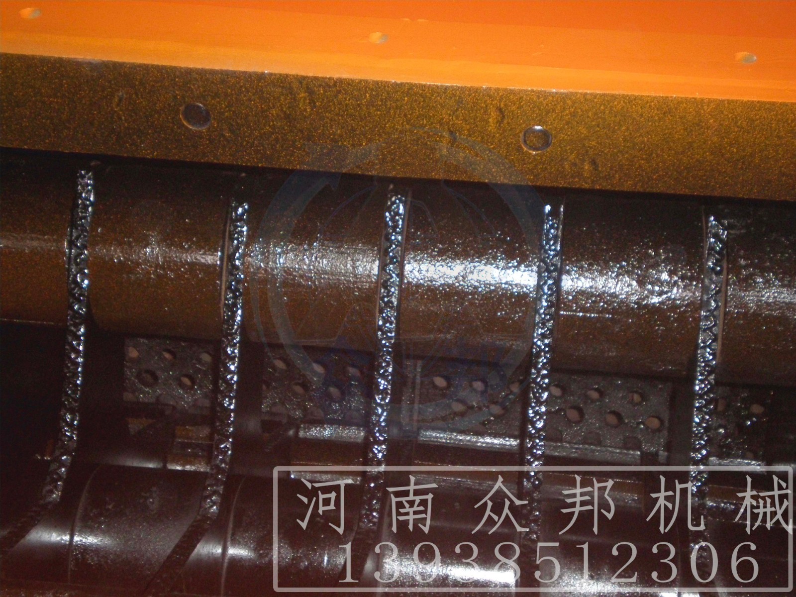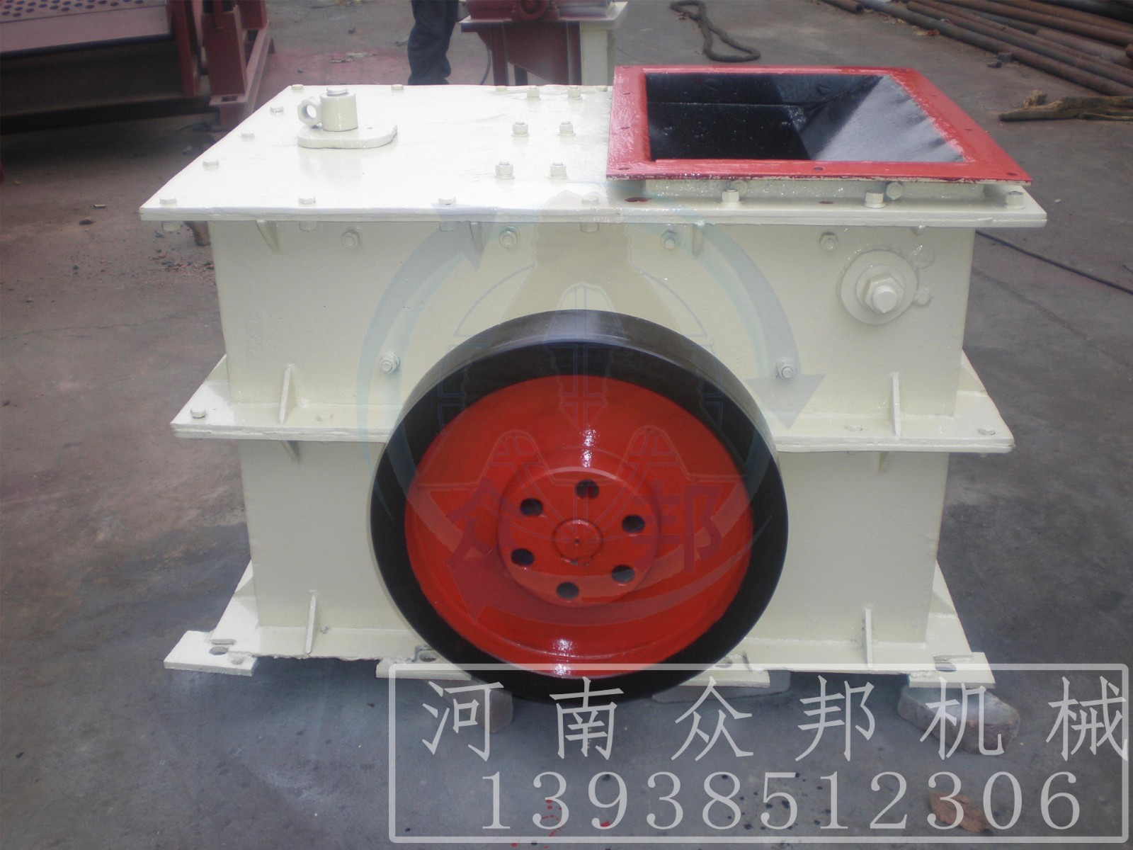 環(huán)錘式破碎機(jī)的工作部件為帶有錘子(又稱錘頭)的轉(zhuǎn)子。轉(zhuǎn)子由主軸、圓盤、銷軸和錘子組成。電動機(jī)帶動轉(zhuǎn)子在破碎腔內(nèi)高速旋轉(zhuǎn)。物料自上部給料口給入機(jī)內(nèi),受高速運(yùn)動的錘子的打擊、沖擊、剪切、研磨作用而粉碎。在轉(zhuǎn)子下部,設(shè)有篩板、粉碎物料中小于篩孔尺寸的粒級 通過篩板排出,大于篩孔尺寸的粗粒級 阻留在篩板上繼續(xù)受到錘子的打擊和研磨,通過篩板排出。